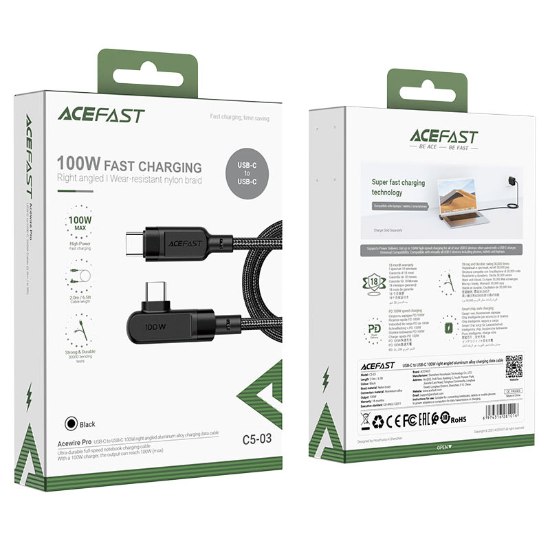בית / חנות / כבל נתונים לטעינה C5-03 USB-C ל-USB-C 100W